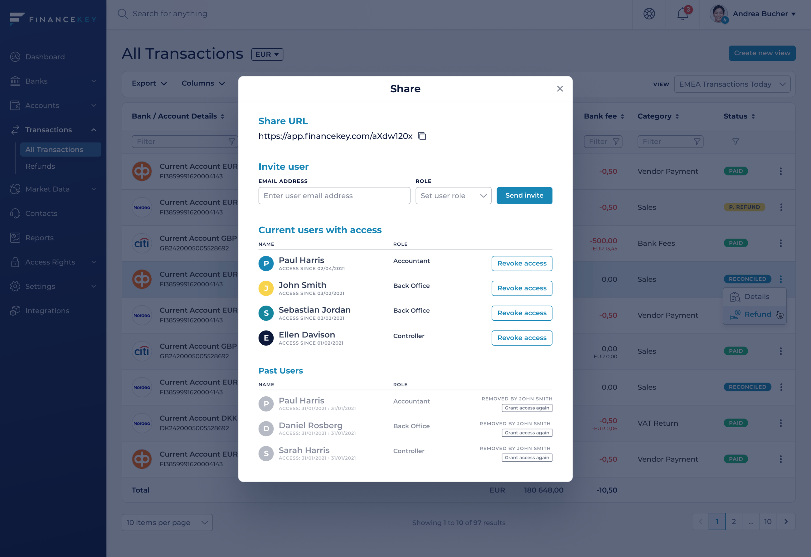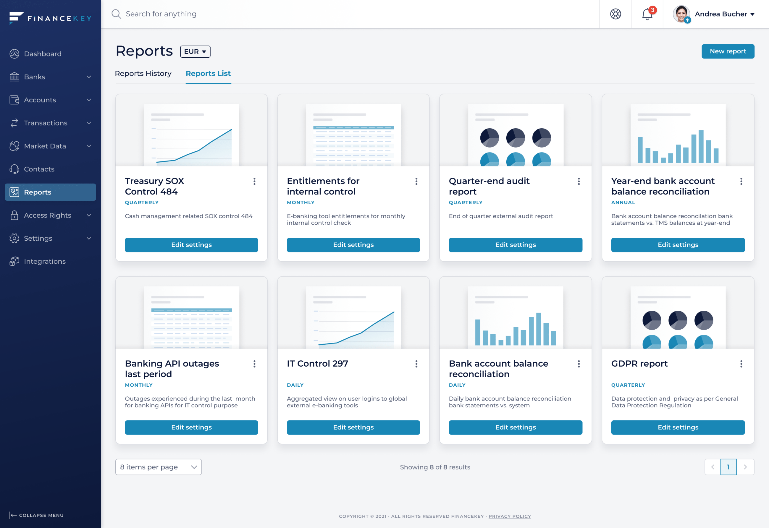 Later, you'll be able to expose selected data and reports via APIs to third parties and external stakeholders, like auditors.