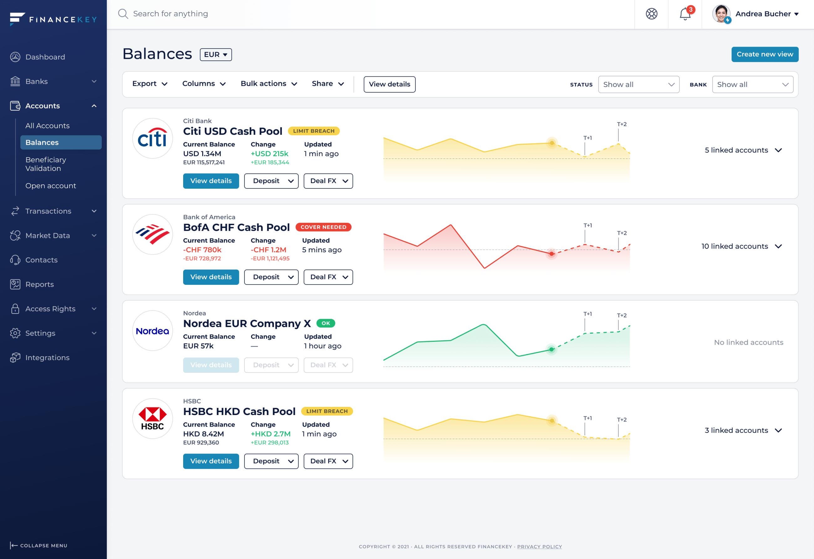 On top of that, FinanceKey helps you automate liquidity management of multiple banks' cash pools in one source.